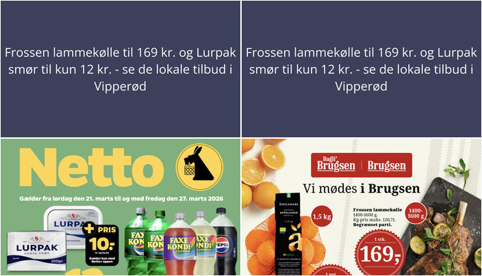 Vi har kigget på denne uges tilbudsaviser for dagligvarebutikker i Vipperød og fundet nogle spændende tilbud. Her er et udpluk af de bedste tilbud fra DagliBrugsen og Netto.