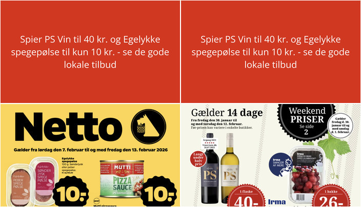 Netto har et godt tilbud på Egelykke spegepølse, enten sønderjysk eller peber, 100 g for kun 10 kr. Tilbuddet gælder fra lørdag den 7. februar til fredag den 13. februar.